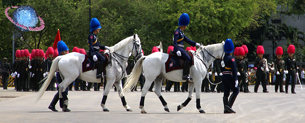 The Royal Thai Police and the Army prepare for a royal funeral at Sanam Luang in Bangkok.