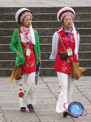 Girls in traditional dress belonging to the Bai ethnic minority in Dali, in southern China.