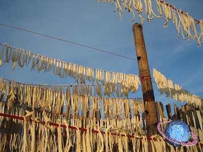 covered with clotheslines, filled with hundreds, if not thousands of sliced