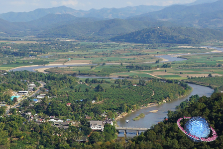 The Kok River near the sleepy town of Thaton in Chiang Mai Province, as seen from the Buddhist hilltop pagoda of Wat Thaton (fig.).