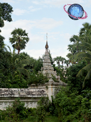 while in the centre, all around the stupa, are depictions of demon-like figures