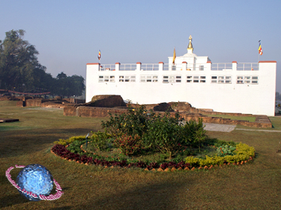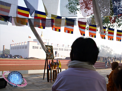 Inside, pilgrims circle the remains of the original temple with the exact spot