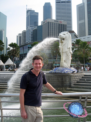 The statue of Merlion, a mythical creature with the head of a lion and the body of a fish, and Singapore's official mascot, located near Marina Bay.