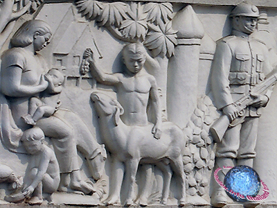 The bas-reliefs on the lower part of the four wings illustrate the history of the Civilian Party whilst marking the change in governmental system.