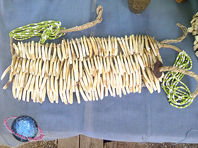 A Naga ornamental clothing piece, probably worn as a kind of breastplate or at the waist, made of animal teeth and tusks.