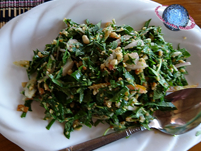 Asiatic Pennywort (fig.), is known in Thai as bai bua bok and can be made into a salad, which in Myanmar is called Myin Kwa Yuat Lethok.