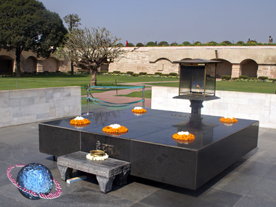The Gandhi Memorial at Raj Ghat in Delhi, consists of a black marble platform that marks the spot on the banks of the Yamuna River, where the body of Mahatma Gandhi was cremated.