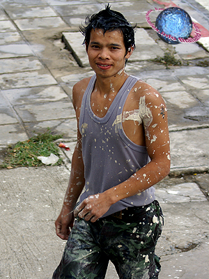 Songkraanfestival is celebrated by smearing each others face with wet talcum