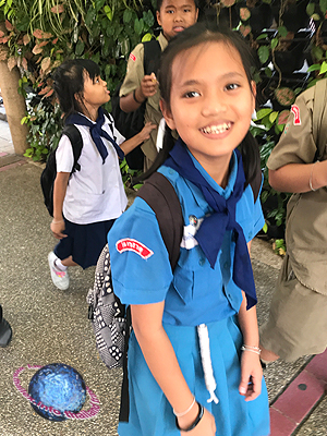 A female Thai Red Cross Youth member in the recognizable pale blue girls' uniform.