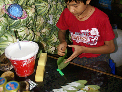 and usually prepared by the seller, who will wrap the ingredients in the leaf ready for chewing.