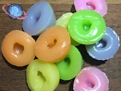 Khanom nahm dokmai is the name of a traditional hand-made Thai sweet. The name derives from the fact that one of its ingredient is scented jasmine water, i.e. water obtained by floating jasmine flower buds on its surface to absorb the scent.
