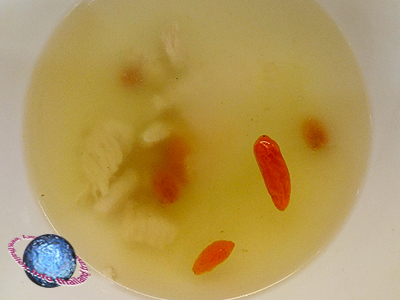 The orangey red berries are sweet and, according to some, also have a slightly nutty taste. Here they are used in an otherwise savory soup.