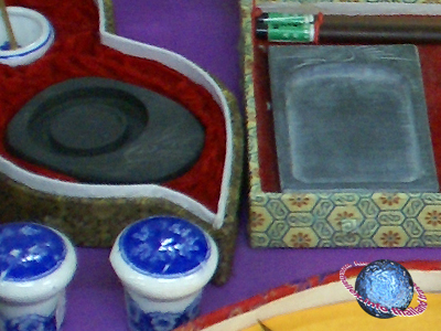 Chinese inkstones, flat stone mortars used for grinding ink sticks (fig.), as well as for holding the obtained ink.